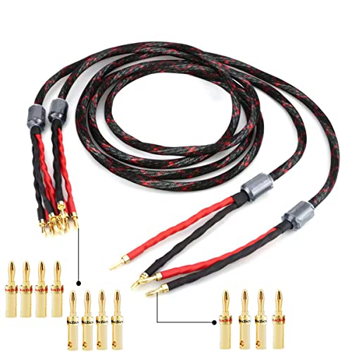 Tech Deals 🔥 Tertullus 1 Pair OFC HiFi Bi-Wire Speaker Cable 12 Banana Plugs Nylon Braid Audio Speaker Cable 2.5M